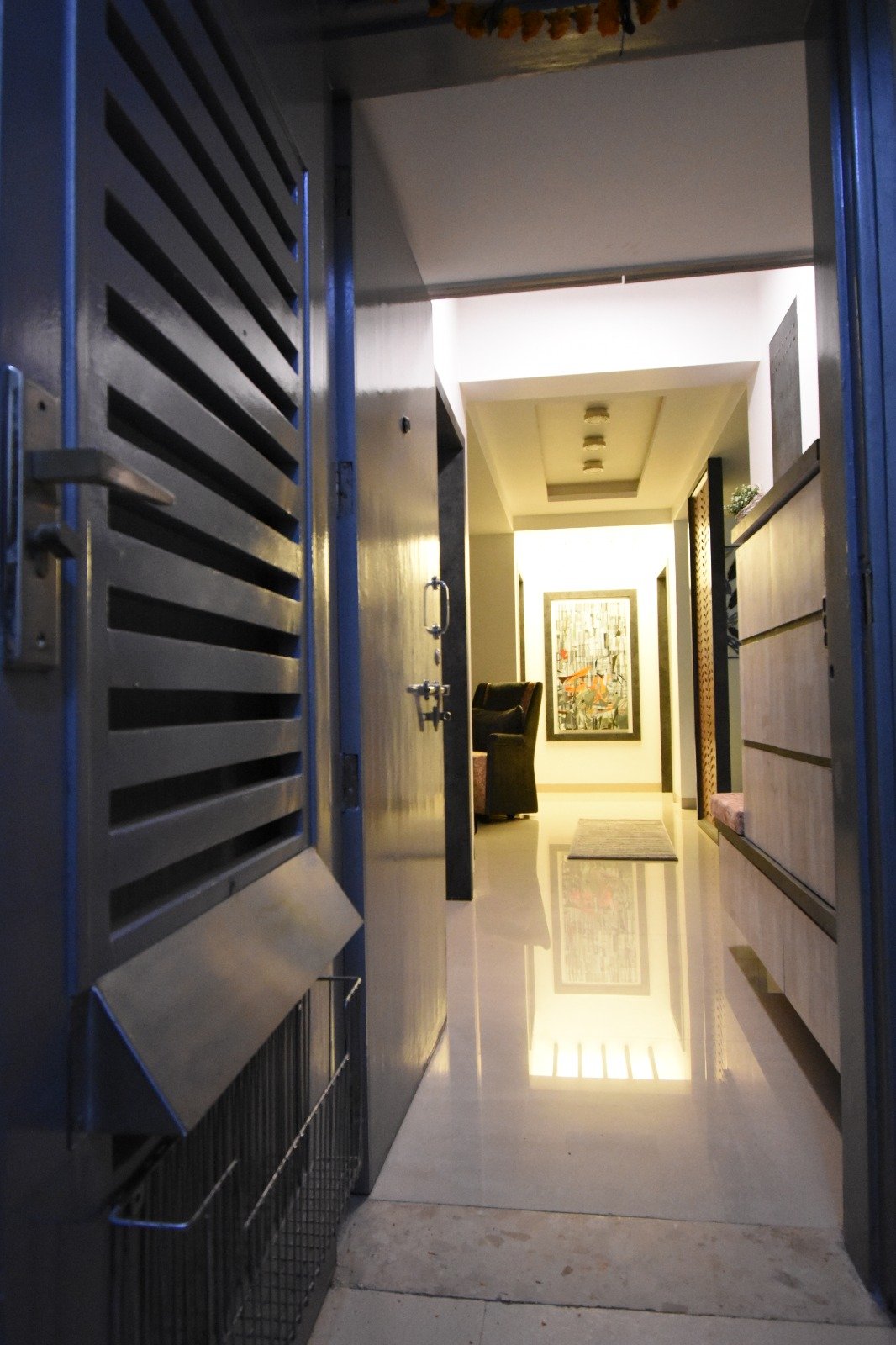 Minimalist Office Lounge With Sleek Modern Material Palette.